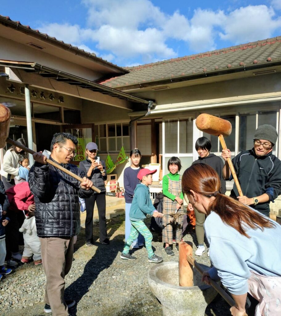 刈ったもち米をついて、おいしいおもちをたくさんいただきました。