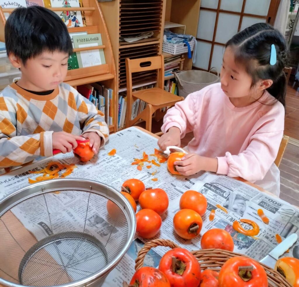 保護者のお家から今年もたくさん渋柿をいただきました。