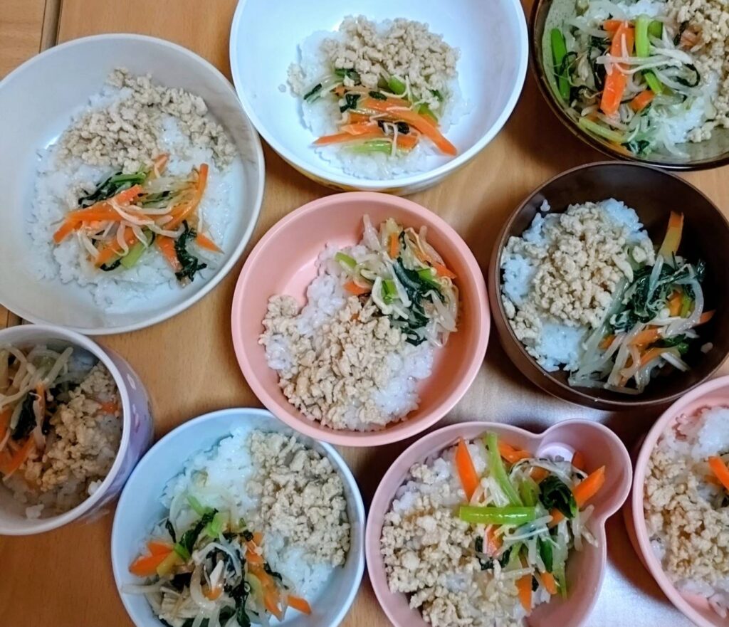 おかわり続出の野菜たっぷりのビビンバ丼。