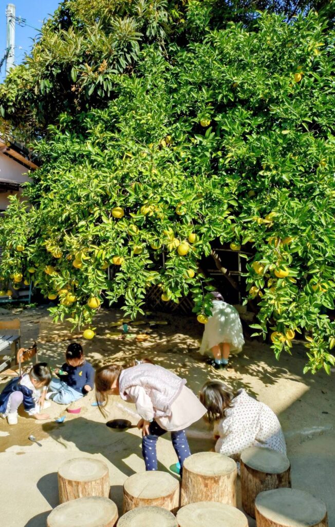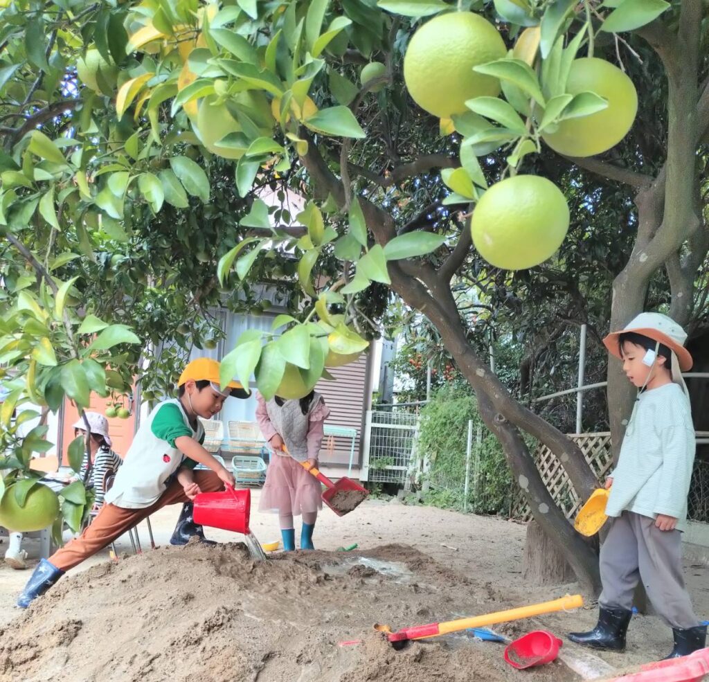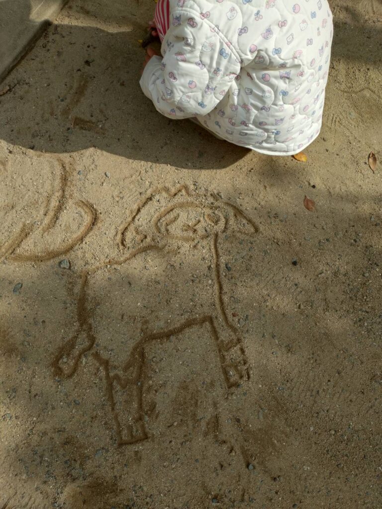 秋の日差しをあびながら、子どもたちの遊びを見ています。