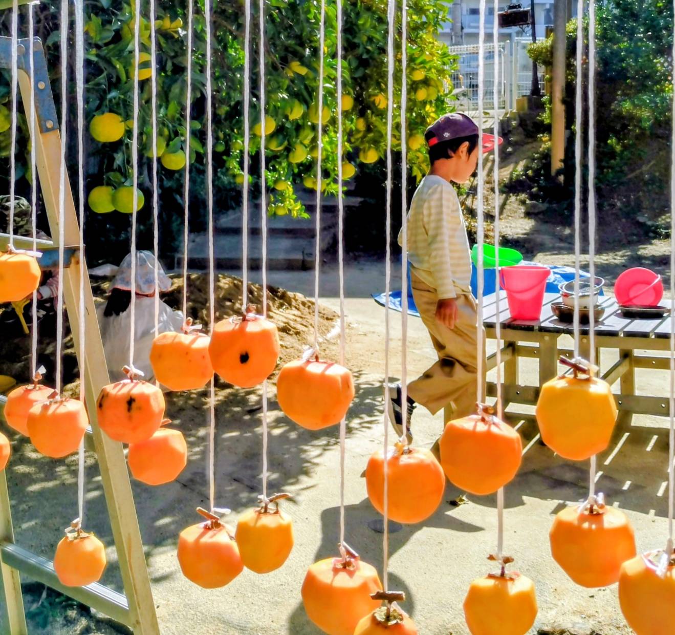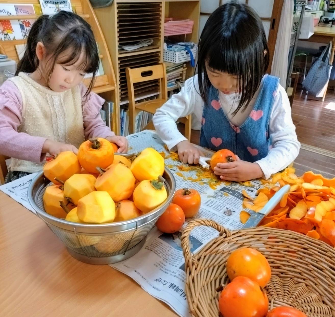 保護者のお家から今年もたくさん渋柿をいただきました。