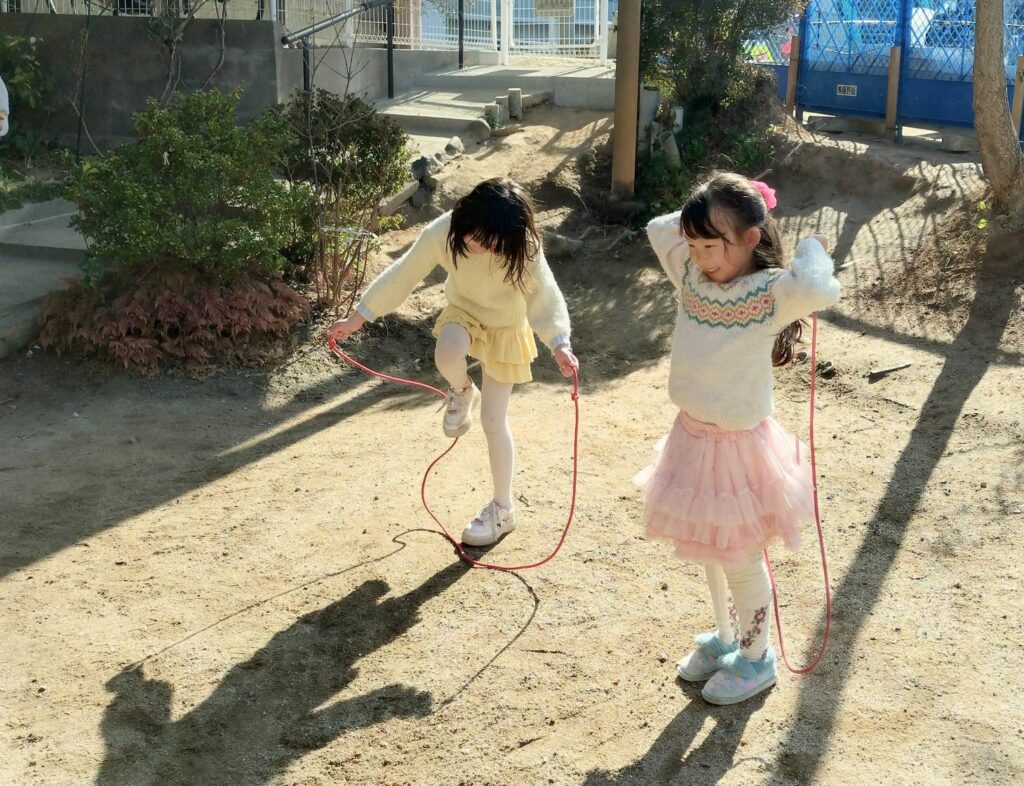 1月は冬らしい寒さでしたが、子どもたちは、元気にとびはねて遊んでいました。