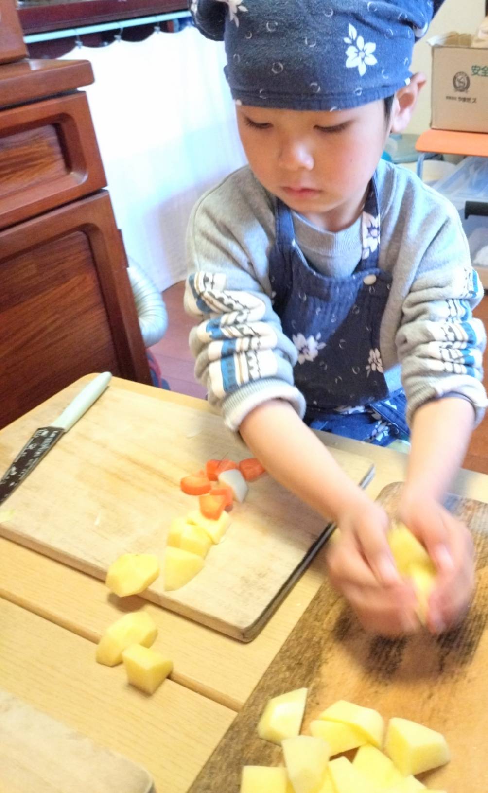 次の日は、小さいお友だちが、給食のりえ先生と一緒に野菜スープを作ってくれました。